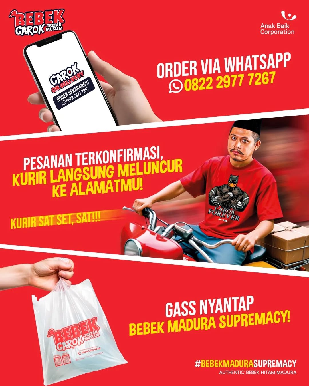 Bebek Carok didirikan dengan visi untuk menghadirkan cita rasa autentik masakan Nusantara, khususnya hidangan bebek yang lezat dan penuh rempah. Inspirasi untuk mendirikan restoran ini datang dari keinginan untuk melestarikan resep turun-temurun yang kaya akan bumbu tradisional khas Indonesia. Sejak awal berdirinya, Bebek Carok telah berkomitmen untuk menggunakan bahan-bahan segar berkualitas tinggi, serta metode memasak yang mempertahankan kelezatan dan keaslian rasa. Dengan dedikasi dalam mengolah setiap sajiannya, Bebek Carok berhasil menarik perhatian para pecinta kuliner dan berkembang menjadi salah satu destinasi favorit bagi mereka yang mencari pengalaman bersantap yang otentik dan memuaskan.